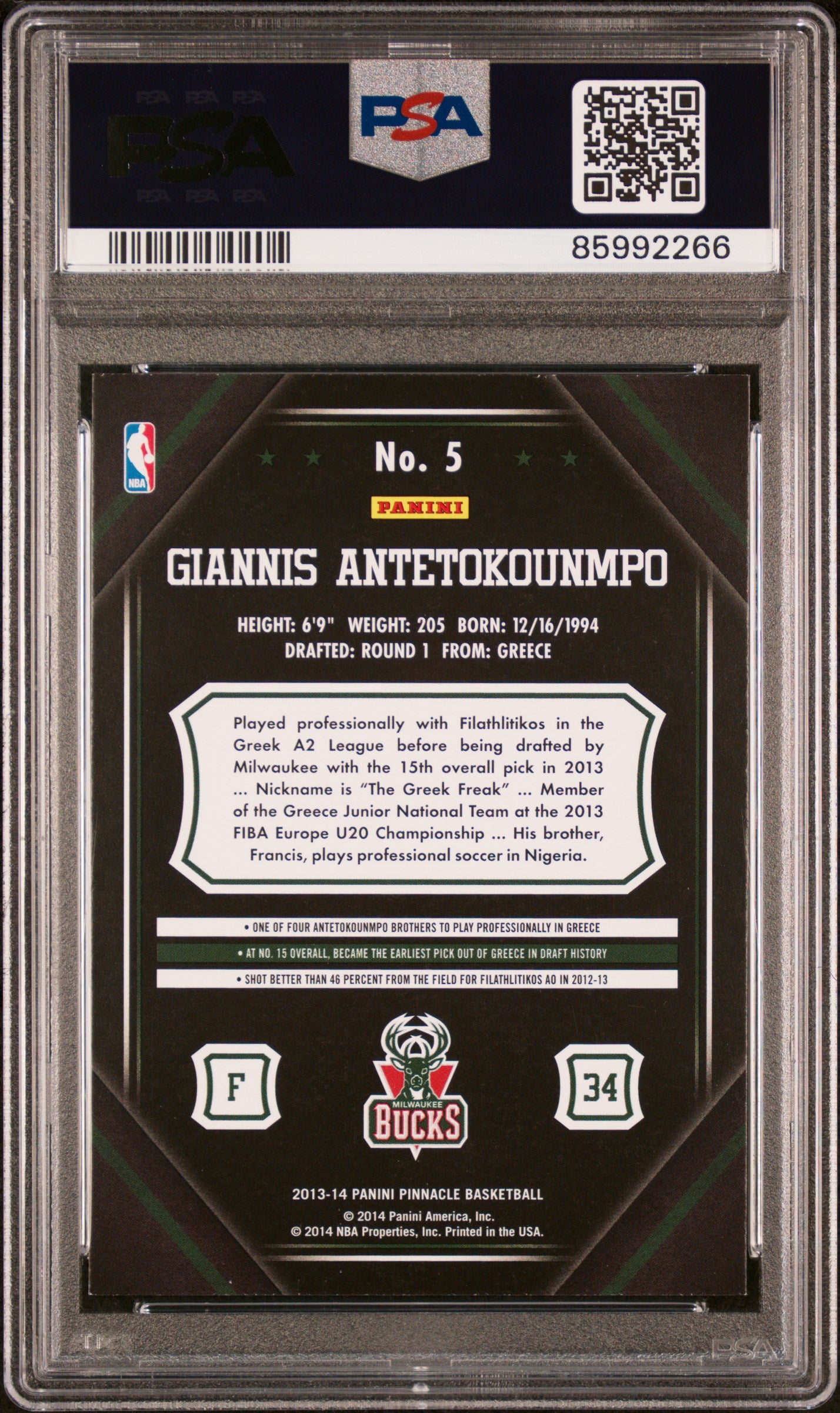 2013-14 Panini Pinnacle - Giannis Antetokounmpo - 5 - Rookie Card - PSA Graded Card