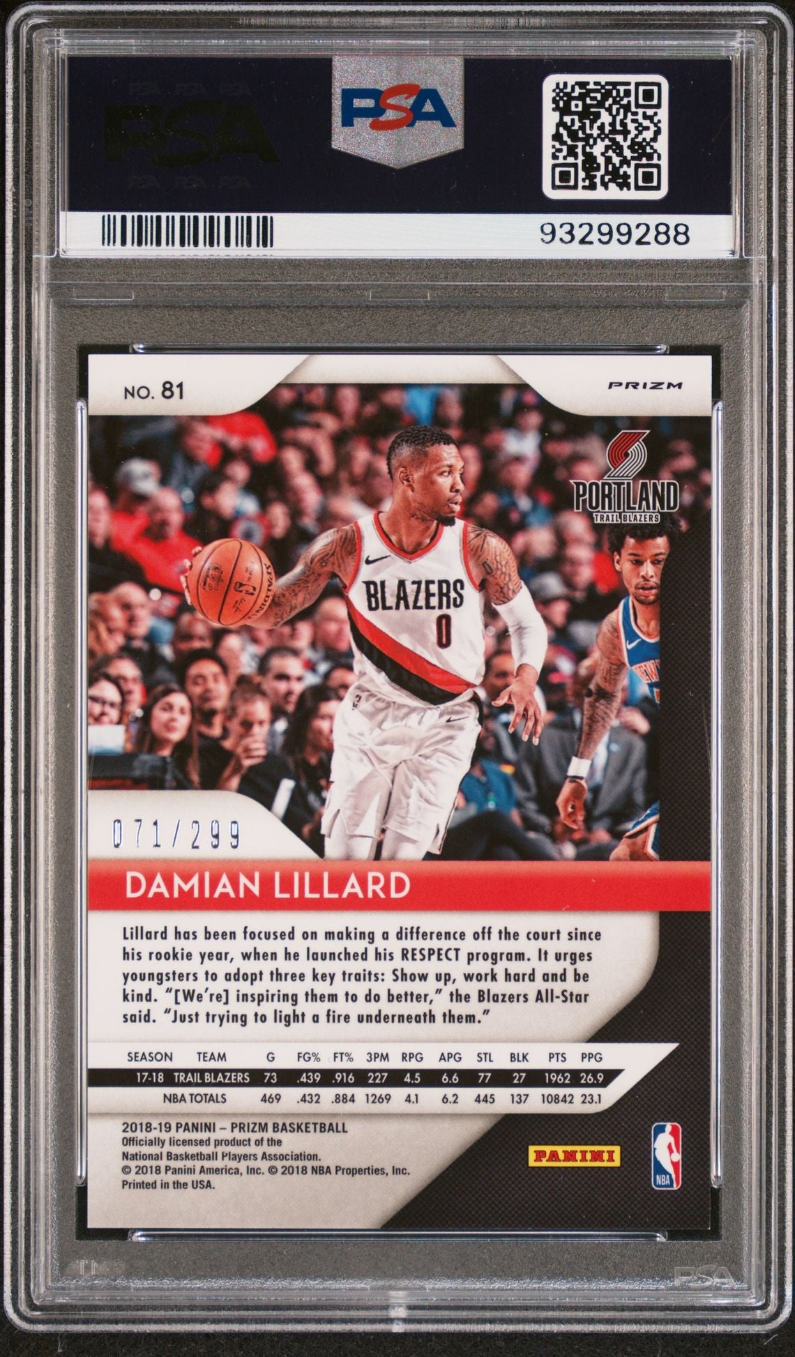 2018 Prizm - Damian Lillard - Red Prizm - Numbered to /299 - #81 - PSA Graded Card