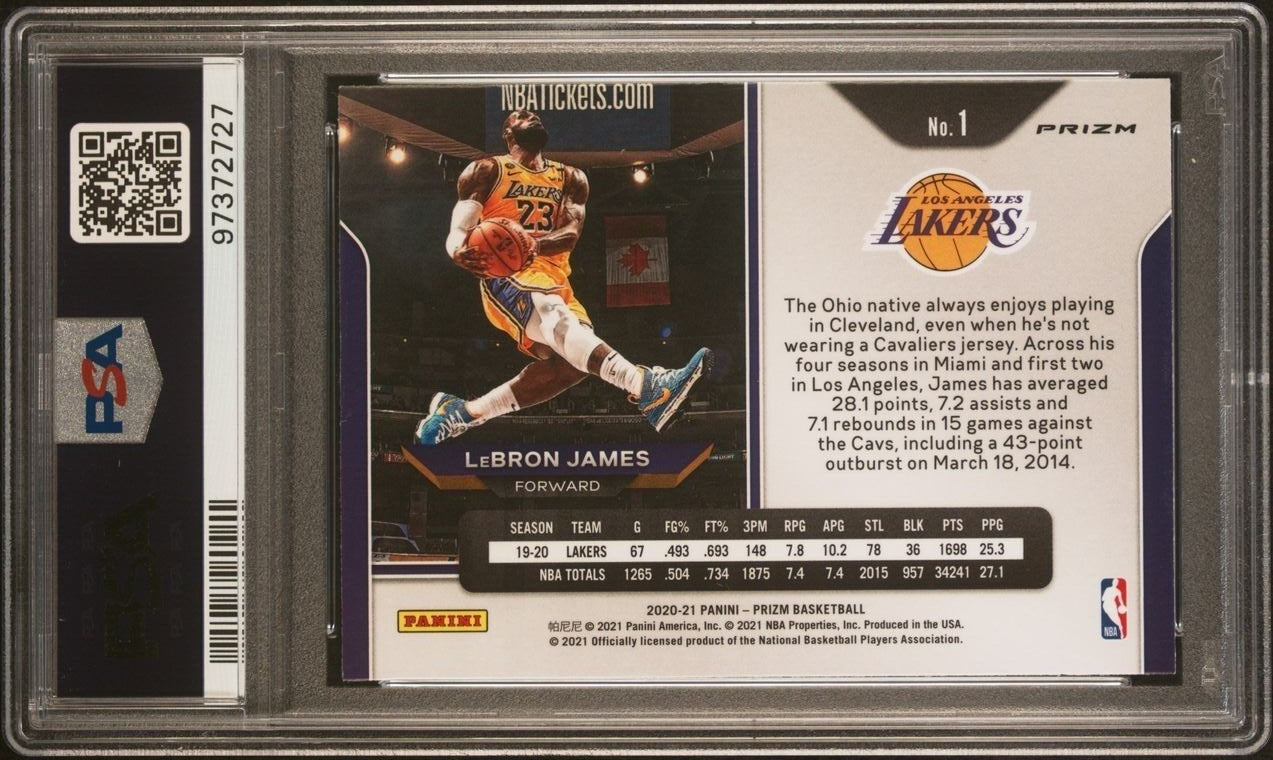 2020-21 Panini Prizm - Silver Prizm - LeBron James - #1 (Kobe Bryant Tribute Dunk) - PSA Graded Card