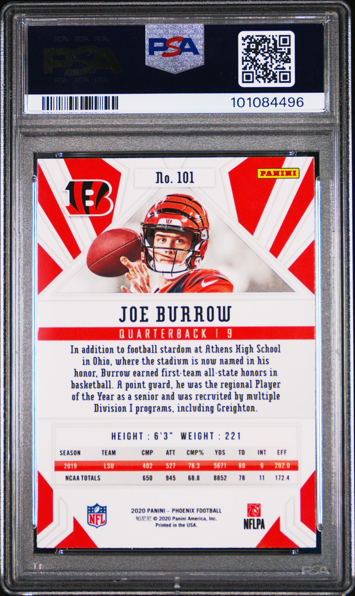2020 PANINI - PHOENIX - #101 - JOE BURROW - FIRE BURST - ROOKIE - PSA Graded Card