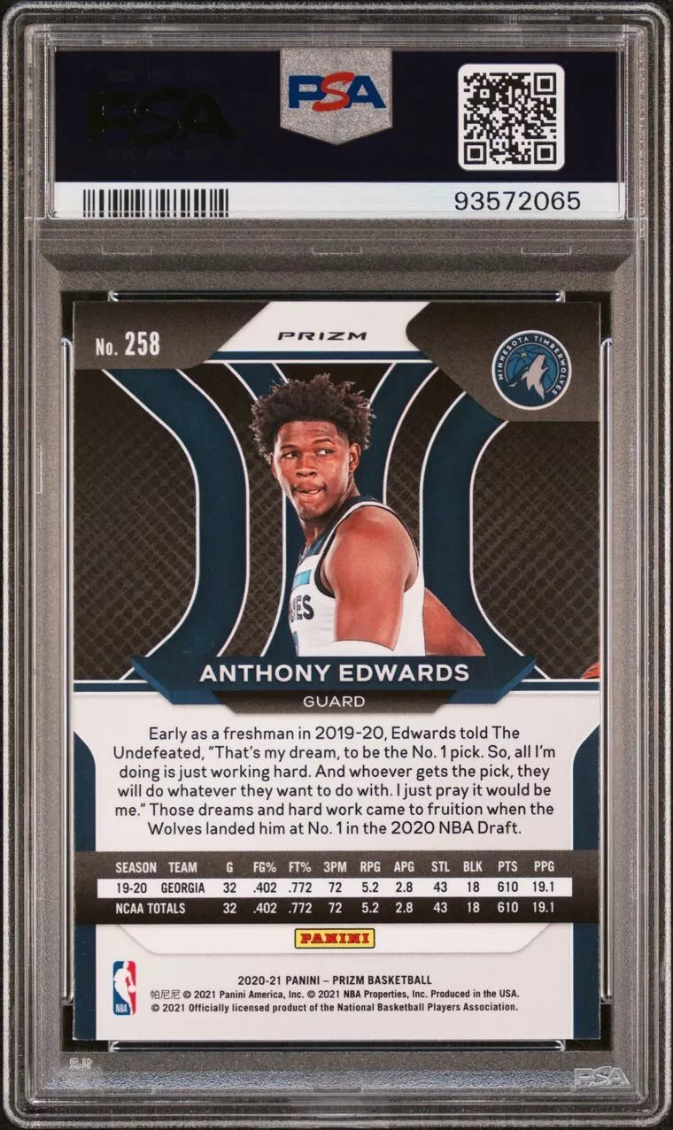 2020 Panini Prizm - Anthony Edwards - Rookie Silver Prizm - #258 - PSA Graded Card