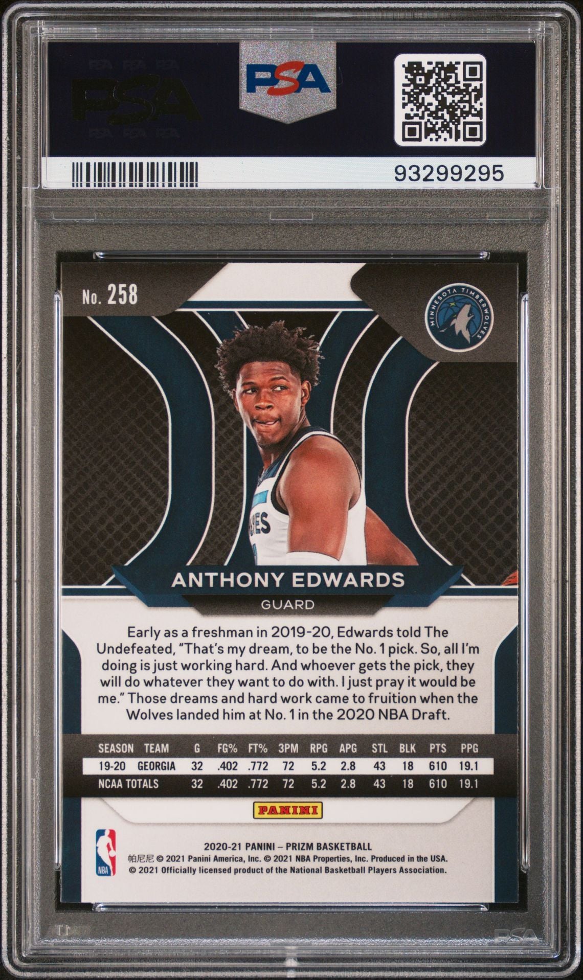 2020 Prizm - Anthony Edwards - Rookie Card - #258 - PSA Graded Card