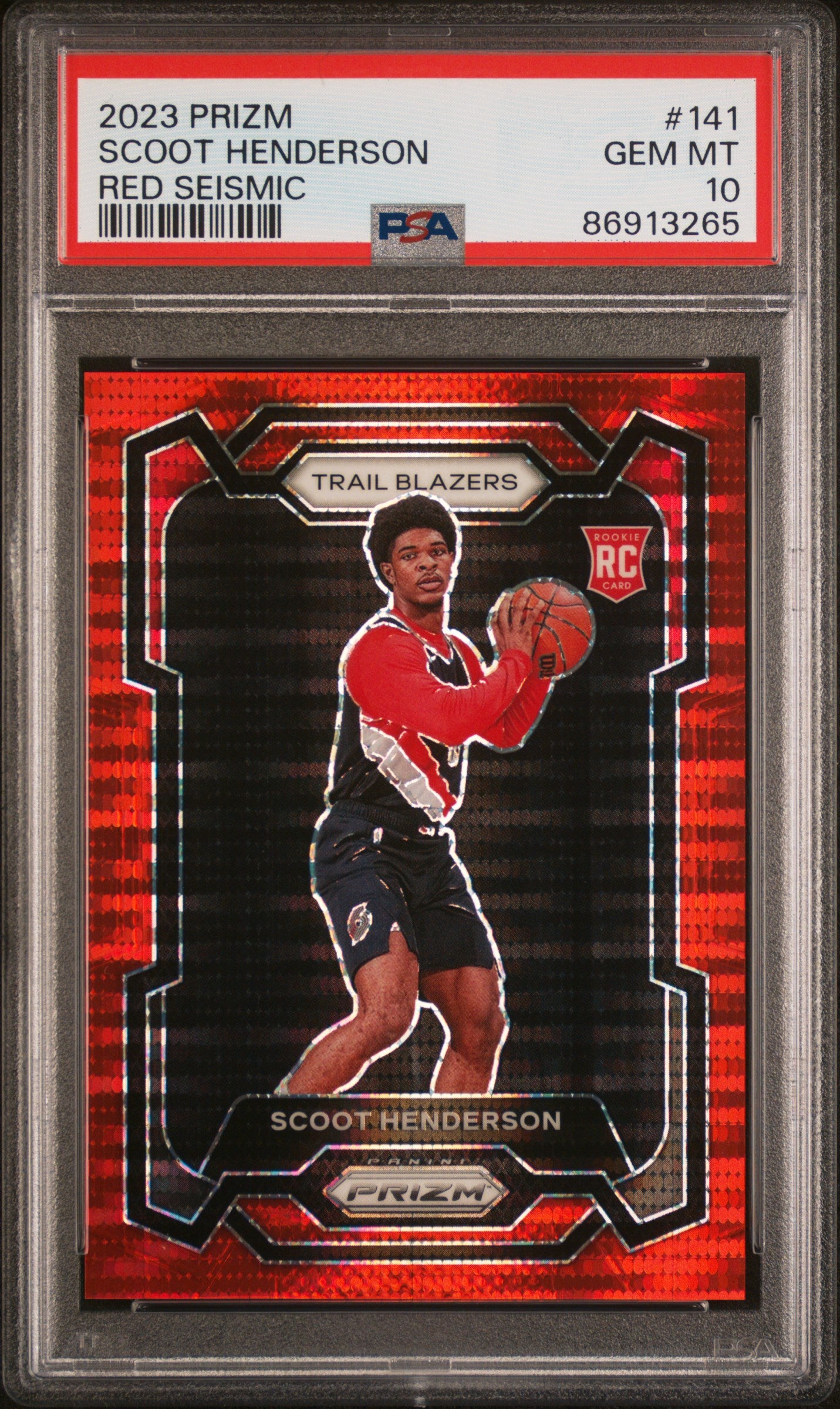 2023-24 Panini Prizm Red Seismic #141 Scoot Henderson - Rookie - PSA 10 - Numbered to /299