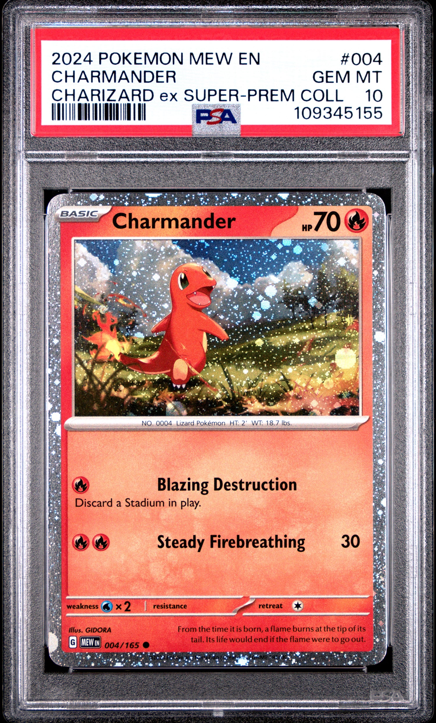 2023 Pokemon MEW-EN - Charmander #004 Cosmos - Charizard Super Premium Collection Promo - PSA Graded Card