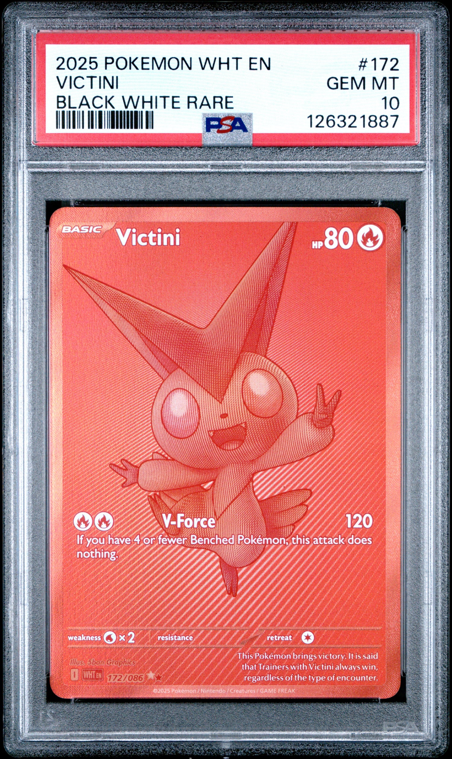 2025 Pokemon - WHT EN - White Flare - VICTINI #172 - Black White Rare - PSA Graded Card