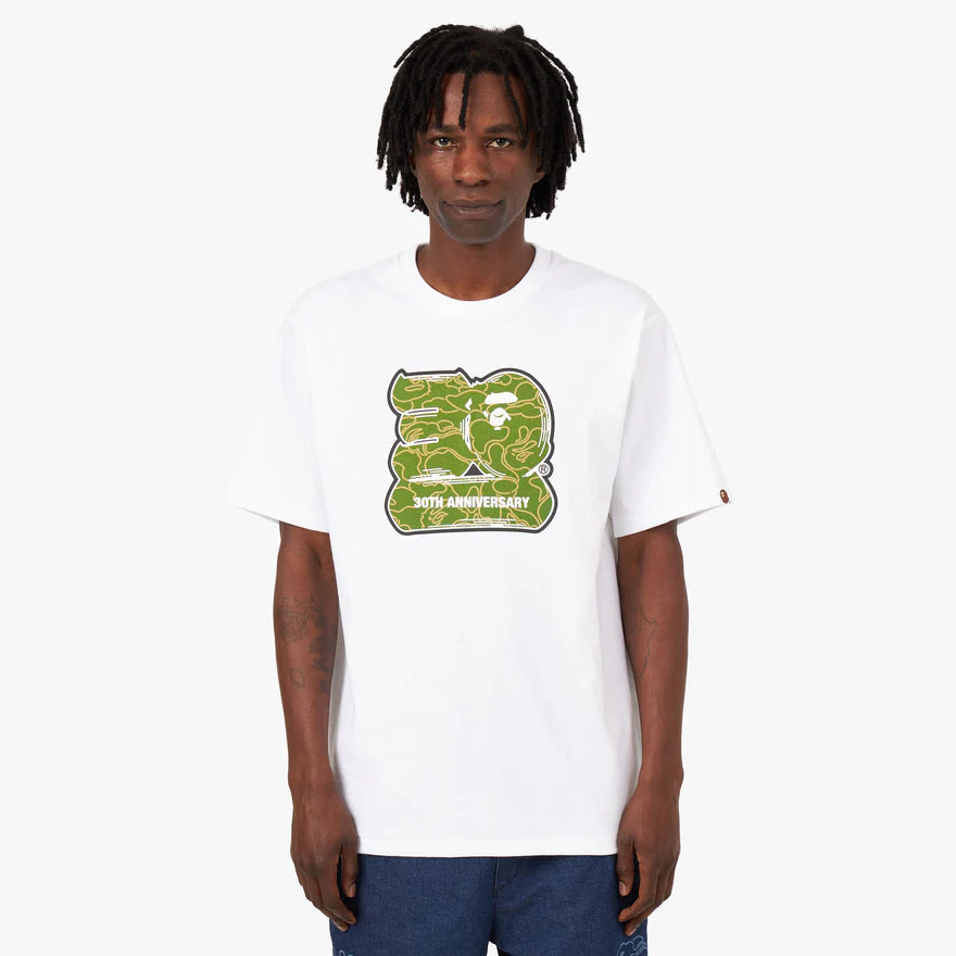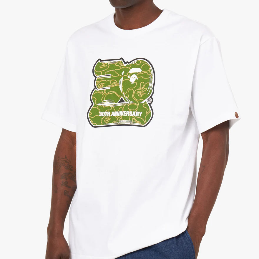 Celebrate three decades of streetwear excellence with the A Bathing Ape 30th Anniversary Ape Head T-shirt. Brought to life with pop artist sneakerwolf, these designs encapsulate BAPE's rich history of innovation and style. This iconic tee pays homage to the brand's legendary status in the fashion world. Crafted from premium cotton, it boasts unparalleled comfort and durability. The signature Ape Head logo takes centre stage, beautifully printed on the chest, representing the brand's bold and unapologetic style. With a timeless design and meticulous attention to detail, this shirt is a must-have for streetwear enthusiasts and fashion connoisseurs alike.