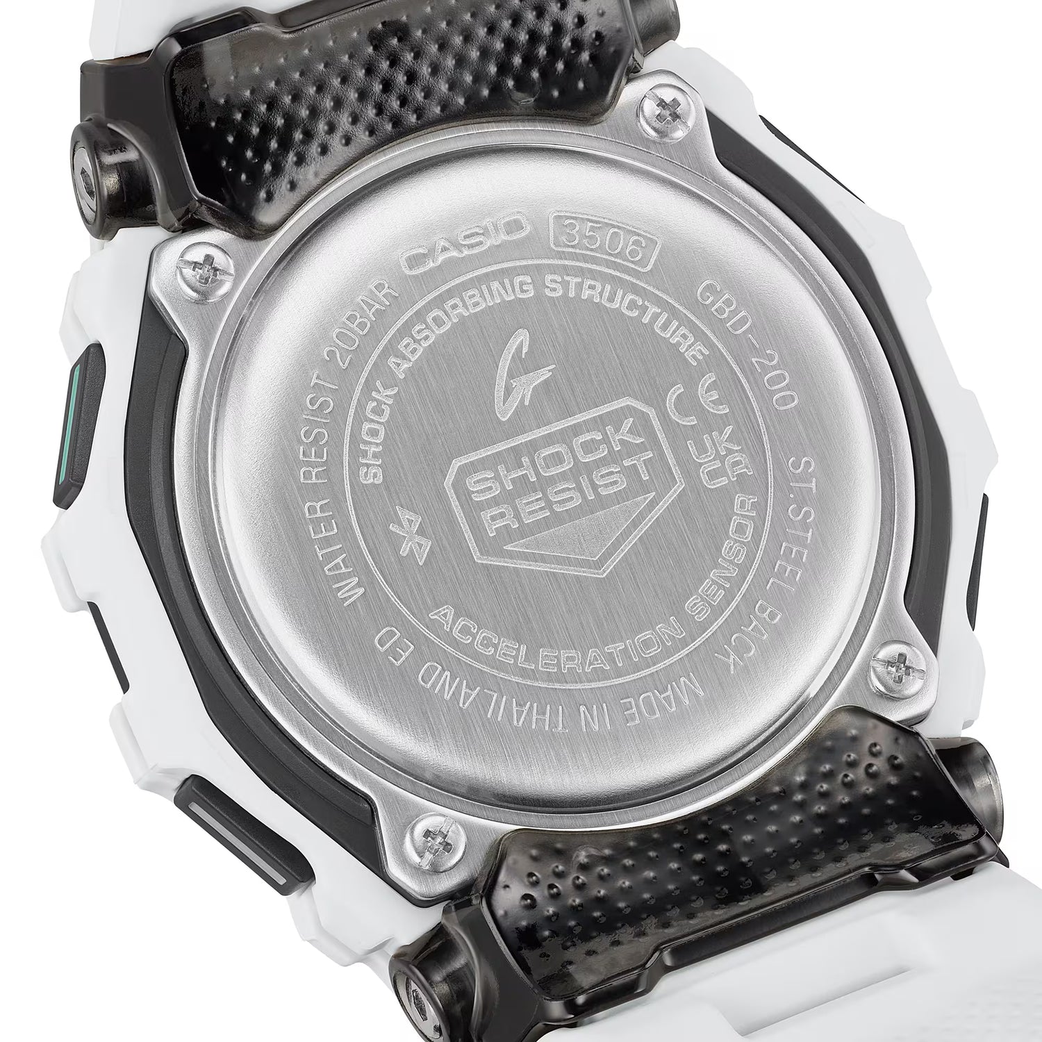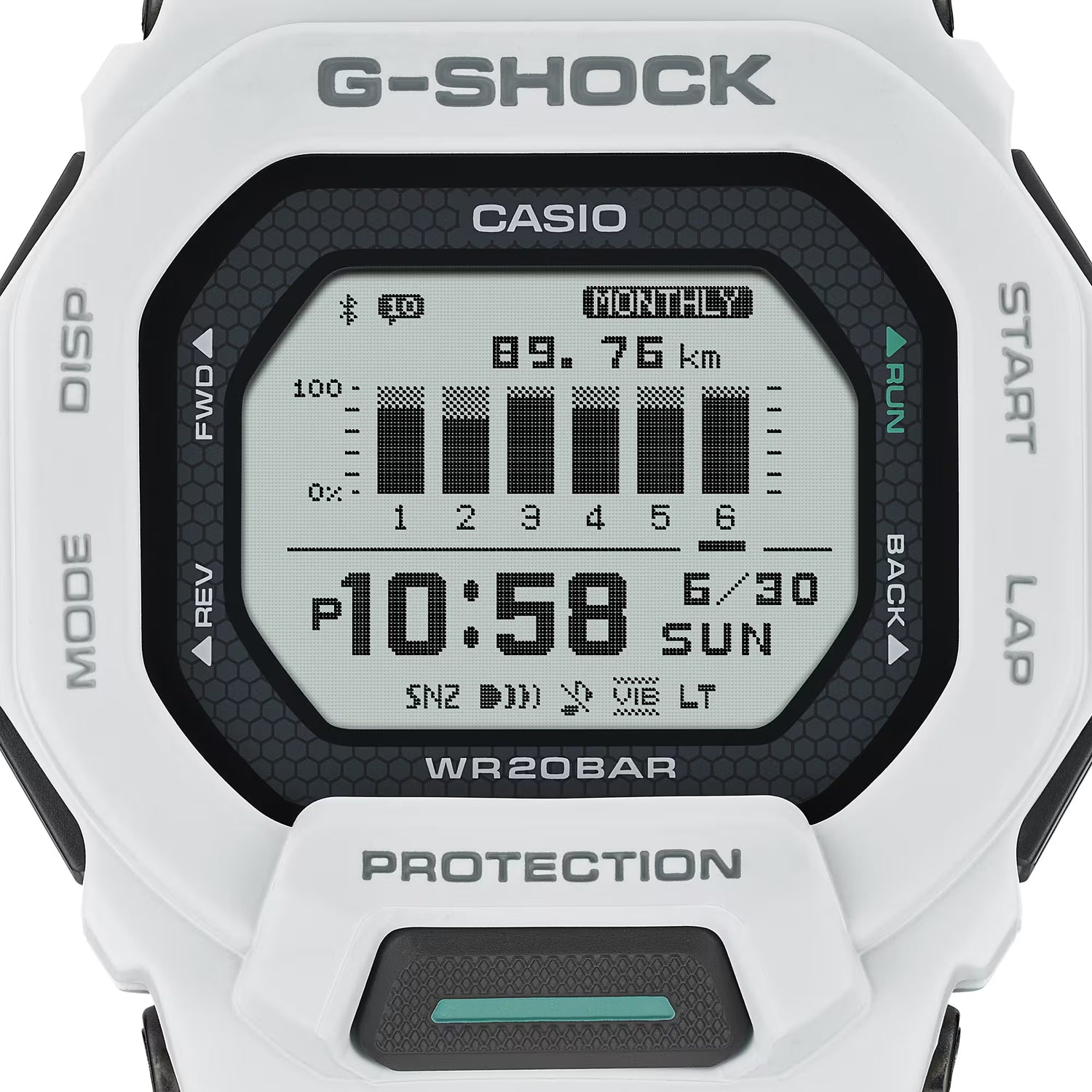 The GBD200 brings a slimmer profile to the G-SHOCK MOVE lineup, built for daily workouts and training. Packed with essentials like step tracking, pace, auto laps, calories burned, and Bluetooth® phone linking for GPS calibration. The soft band and extra adjustment holes offer a better fit, while the front light button keeps you going even at night. Simple, smart, and ready to move.