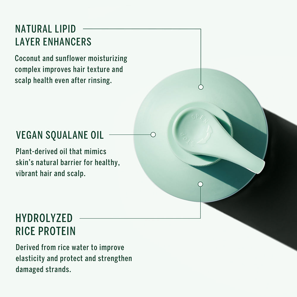 The highly effective formula contains natural lipid layer enhancers, derived from coconut and sunflower oils, with lasting moisturizing properties that continue to improve hair texture and scalp health after rinsing.