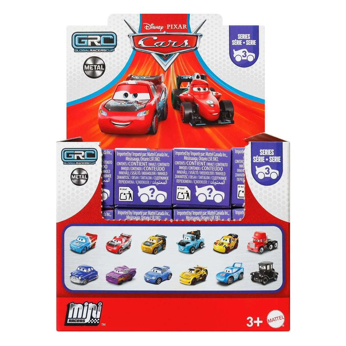 The Disney Pixar Cars Mini Racers Blind Pack 2024 Mix 3 Case (996W) includes 36 individually packaged vehicles: