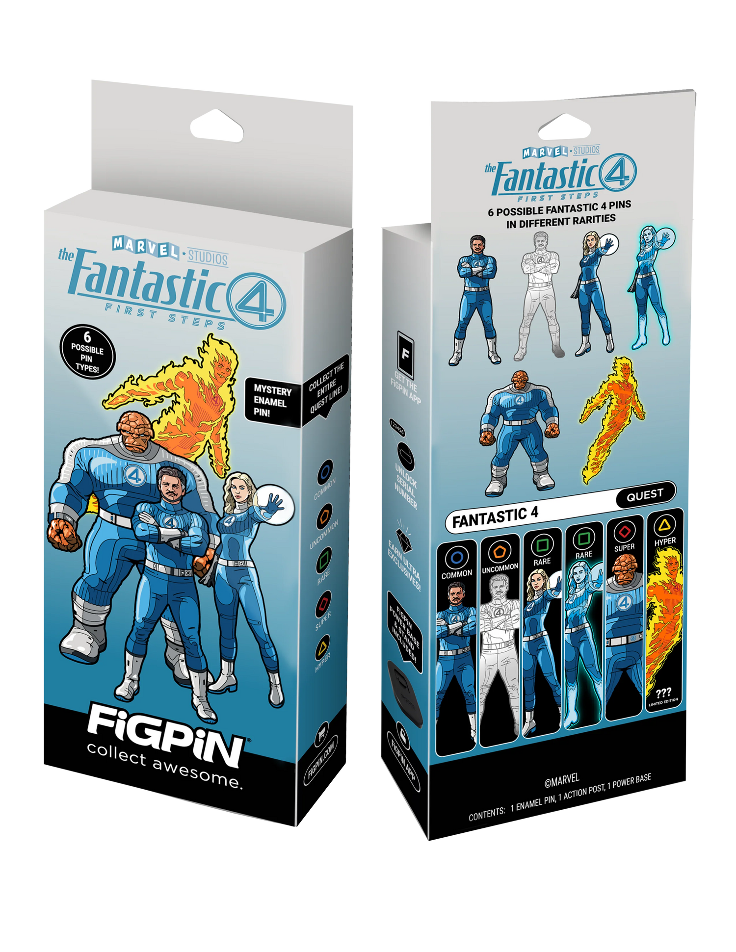 Introducing the Marvel’s Fantastic Four™ FiGPiN Quest - an epic blind box series featuring enamel pins inspired by the movie release of Fantastic Four™! Collect your own set of FiGPiNs featuring Mister Fantastic, Invisible Woman, The Thing, and the Human Torch!