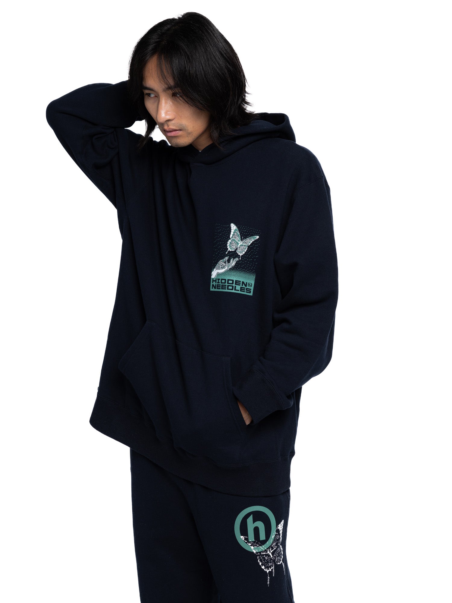 Hidden NY x Needles H Logo Pixel Butterfly Hoodie Navy