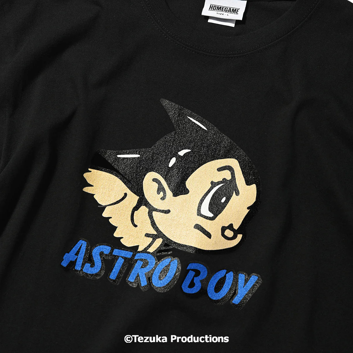 A T-shirt by "Astro Boy," a timeless Japanese hero, and shop "HOMEGAME." A simple yet impactful piece that can be worn by fans as well as a fashion item.