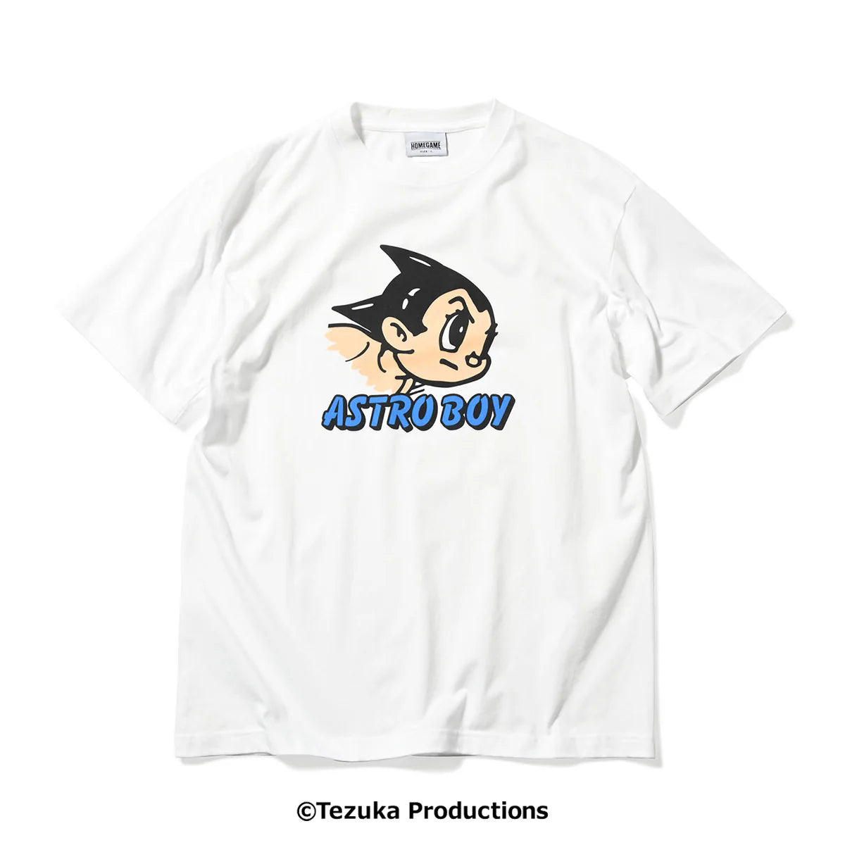 A T-shirt by "Astro Boy," a timeless Japanese hero, and shop "HOMEGAME." A simple yet impactful piece that can be worn by fans as well as a fashion item.