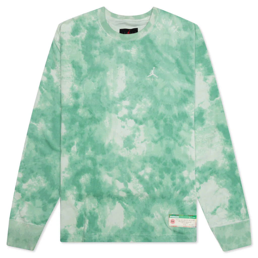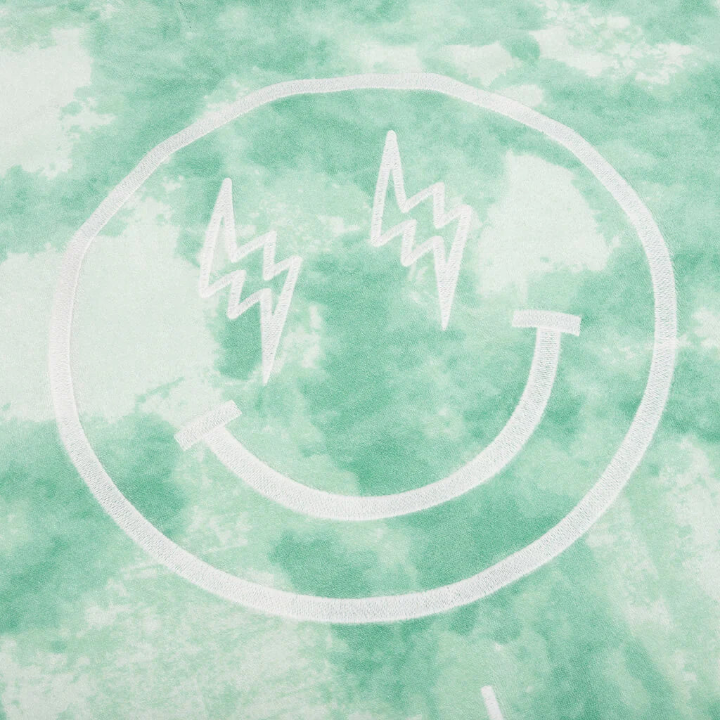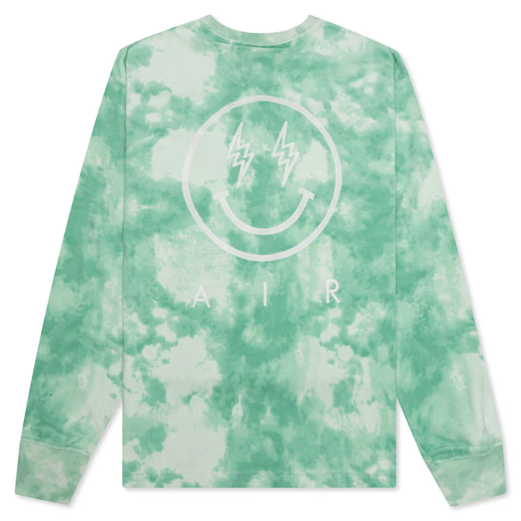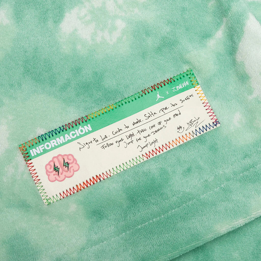 Made for a relaxed fit, the Jordan x J Balvin Crew is a premium athleisure silhouette that is energized in its aesthetic. Cut from cotton and polyester, the silhouette spotlights ribbed detail at the neckline and cuffs. A woven label is seen at the hem, while the rainbow stitching and J Balvin’s signature printed smiley face make an impression. The all-over tie-dye and UV-reactive graphics finish the rest of the silhouette.