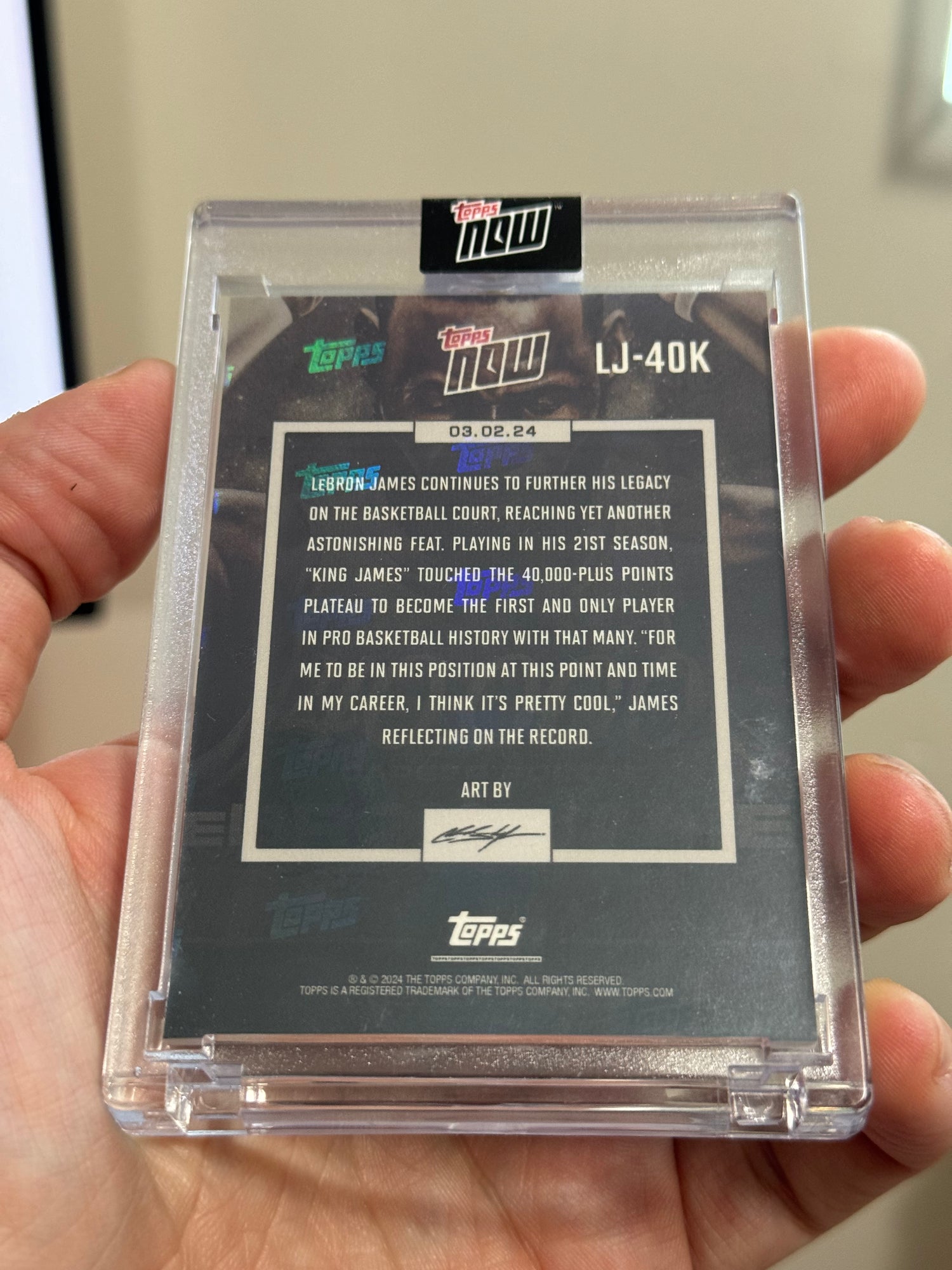 LeBron James 2023-24 TOPPS NOW Encased 40,000 Career Points Basketball Card