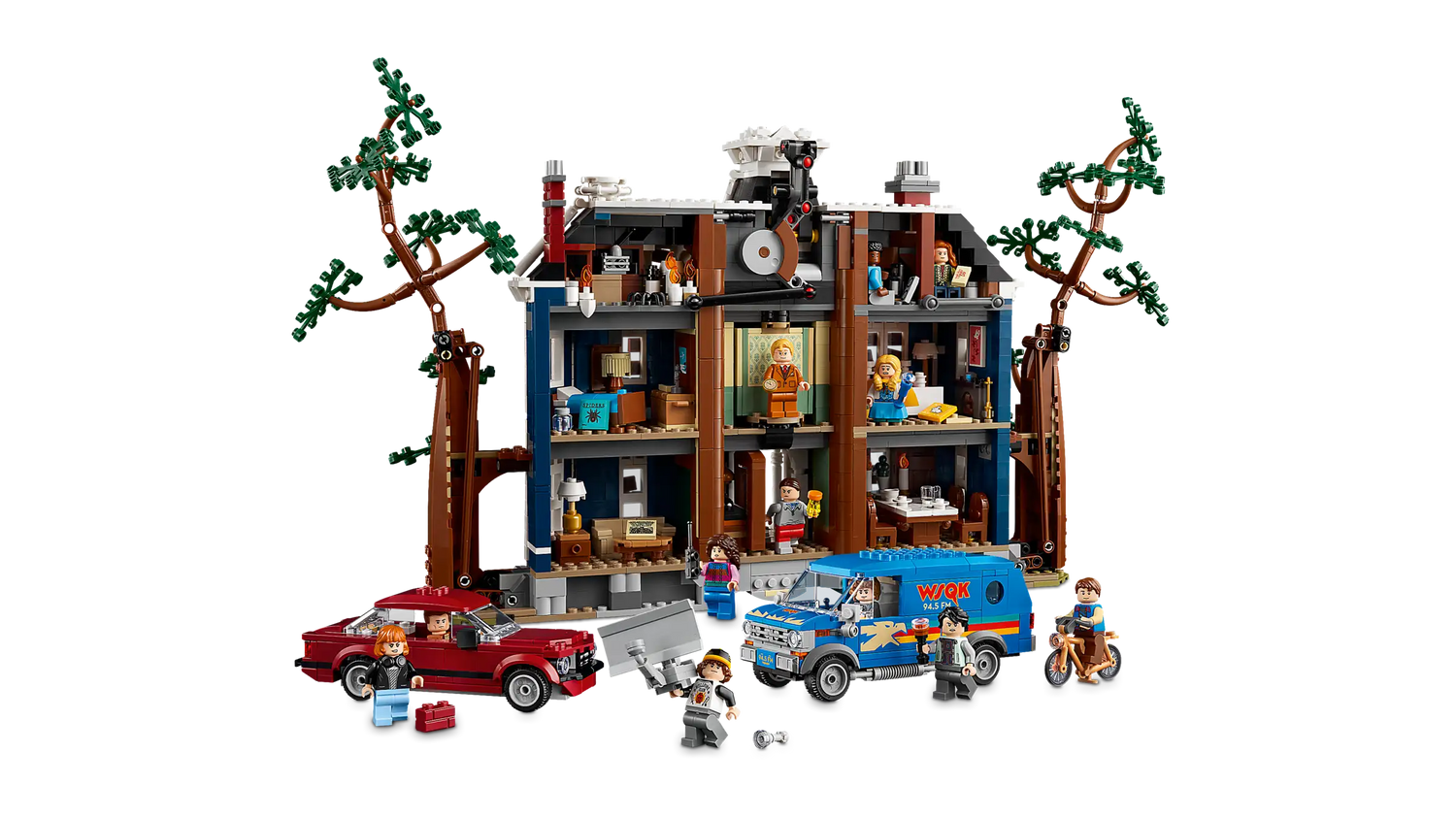 Enter the Upside Down with the LEGO® Icons Stranger Things: The Creel House (11370), a mini house building kit for adults. This hauntingly detailed model of the ominous Gothic manor includes Steve’s car, the WSQK radio van and Will’s bicycle. The house features an ornate facade and open back with access to an entryway, dining room, sitting room, Alice’s and Henry’s bedrooms, the chilling upstairs hallway and 2 attic spaces.