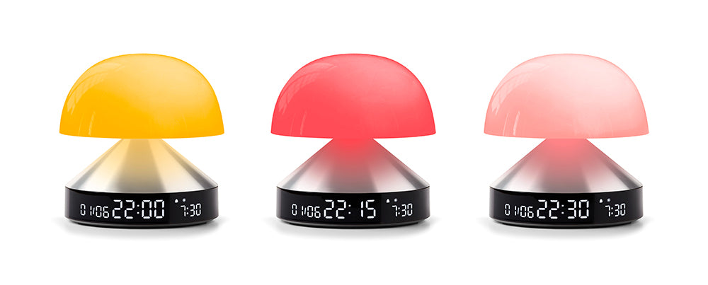 Thirty minutes before your set wake-up time, the dark blue tones gradually transform into warm white to stimulate your awakening. Its compact shape, aluminum base, and high-quality display make it a perfect addition to your bedside table. With 9 LED colors and intuitive features, Mina Sunrise is ideal for a calming wake-up or a cozy reading moment.- Sunrise & Sunset simulation