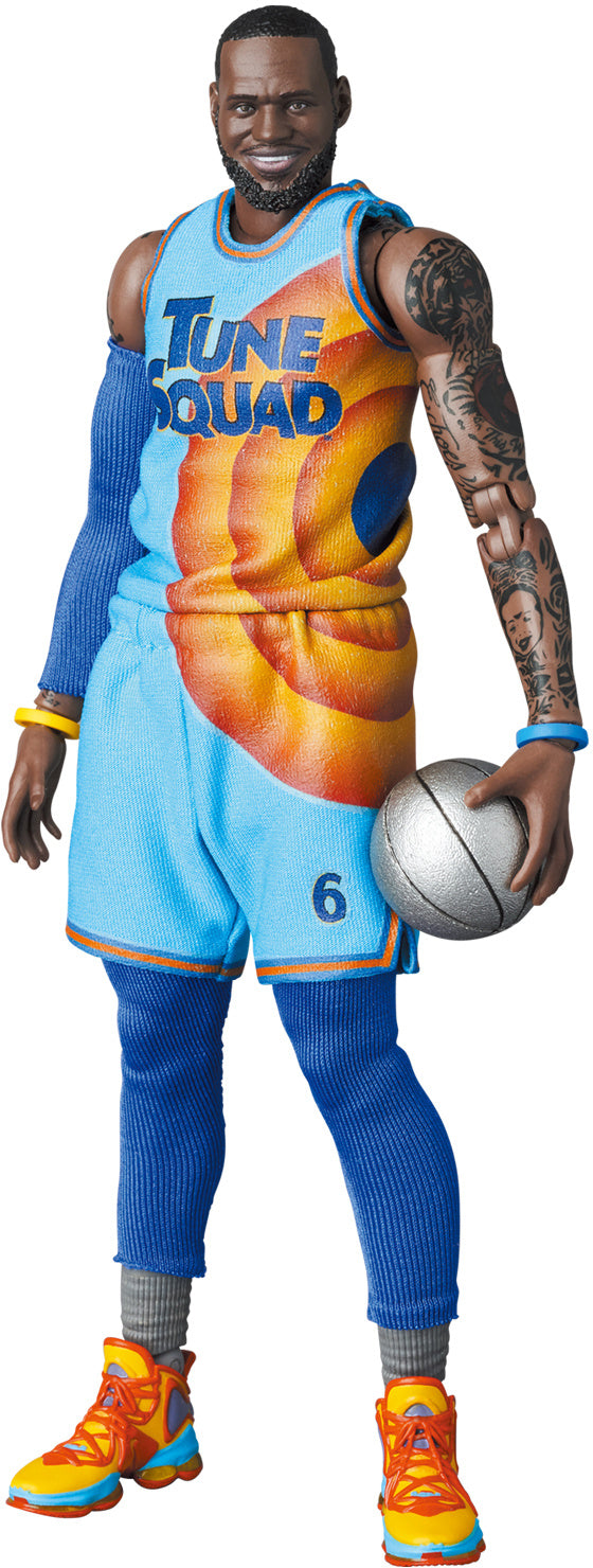 LeBron James, as seen in the 2021 film "Space Jam: A New Legacy," now joins the MAFEX action-figure lineup from Medicom! This insanely posable figure of the NBA legend comes with three interchangeable heads with different facial expressions, as well as specially designed basketball shoes, a ball with energy effect parts, and a posable figure stand! LeBron even wears a fabric uniform for maximum realism. Order him for your own collection today!