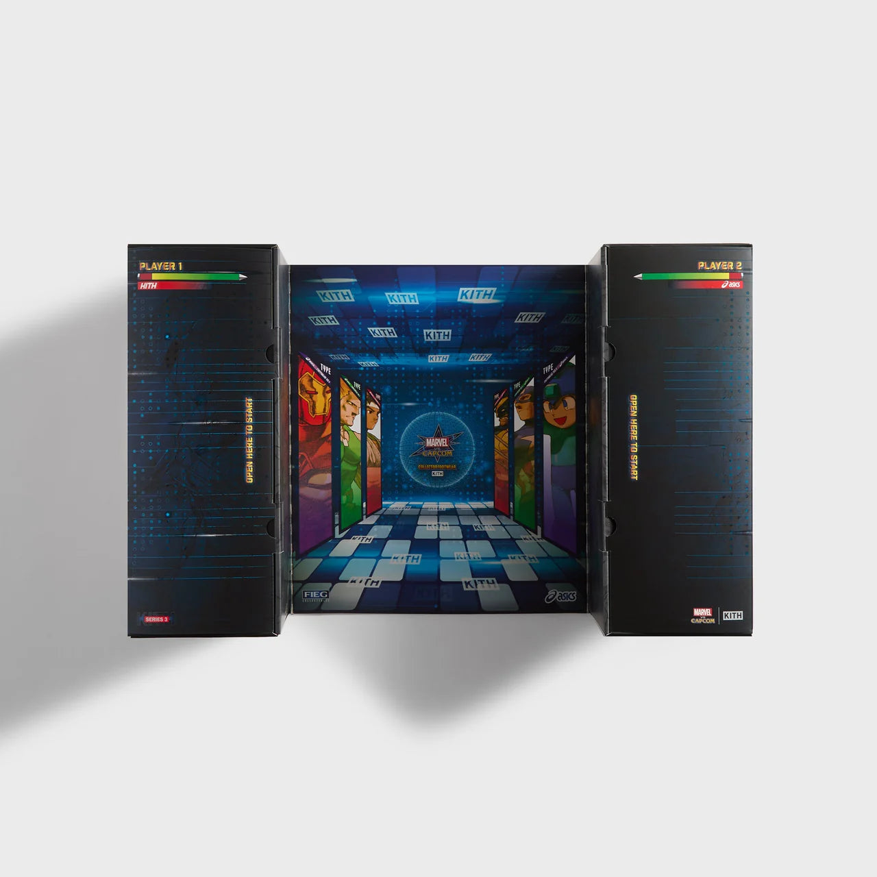 The Marvel vs. Capcom | Kith for ASICS GEL-KAYANO® 14 Wolverine draws inspiration from Marvel’s Wolverine. It features an open mesh upper with iridescent synthetic overlays and a mesh lining. It is accented by a rubberized toe cap, ASICS Tiger Stripes on the side panels, custom Kith branding on the tongue, and FIEG branding on the heel. Additional details include flat laces, a metallic heel, along with Marvel vs. Capcom branding and Wolverine artwork on the sockliner. It is equipped with TRUSSTIC™ system cushioning, GEL™ technology inserts, dual-layer EVA foam midsole, and a rubber outsole, for comfort and stability.