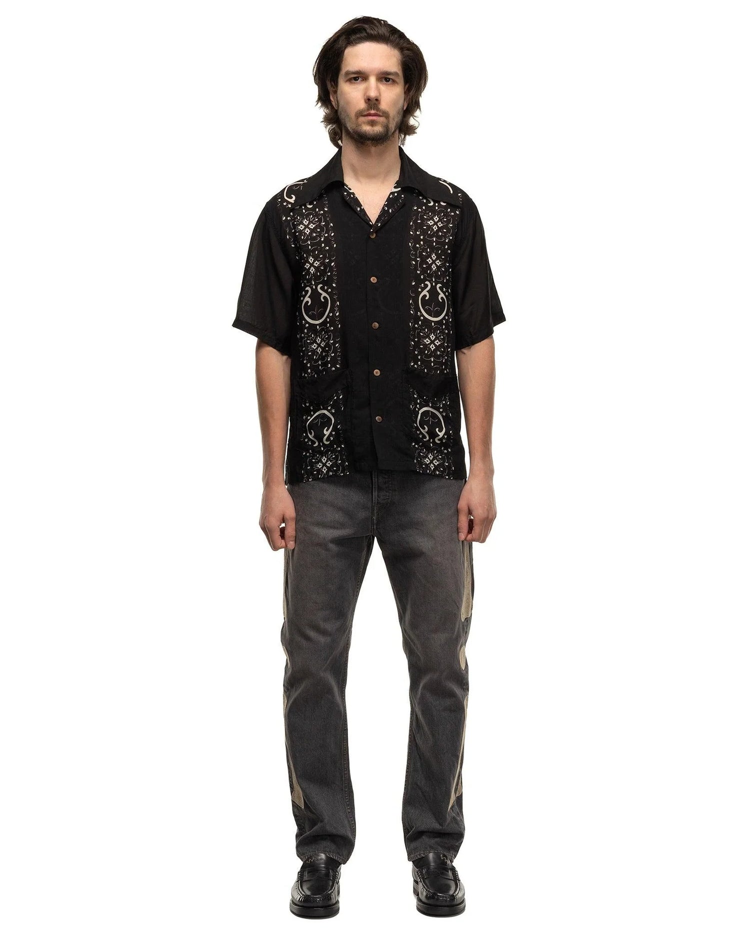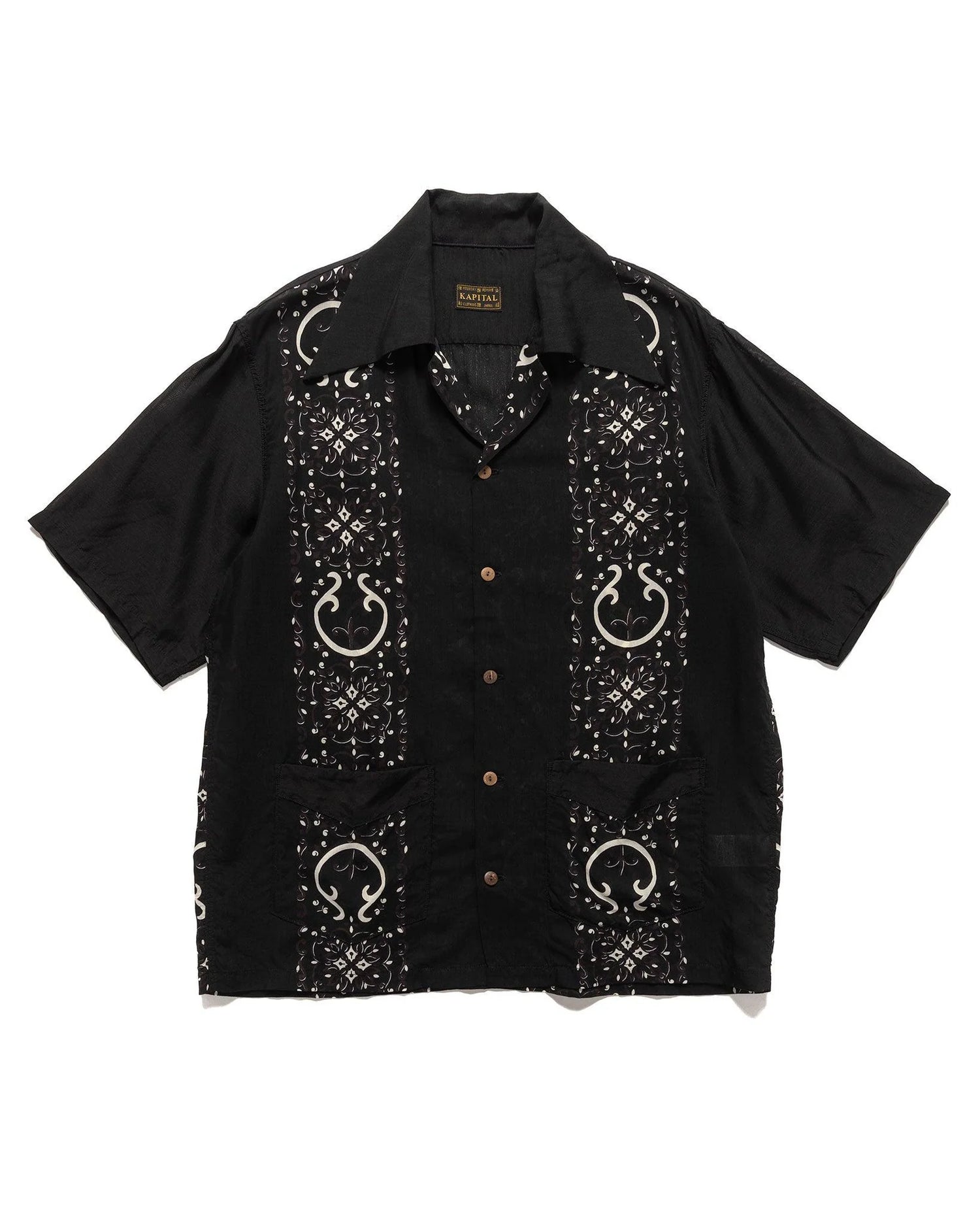 Kapital: Silk Rayon Havananaja Drizzle Cuba Shirt - Black - K2405SS219