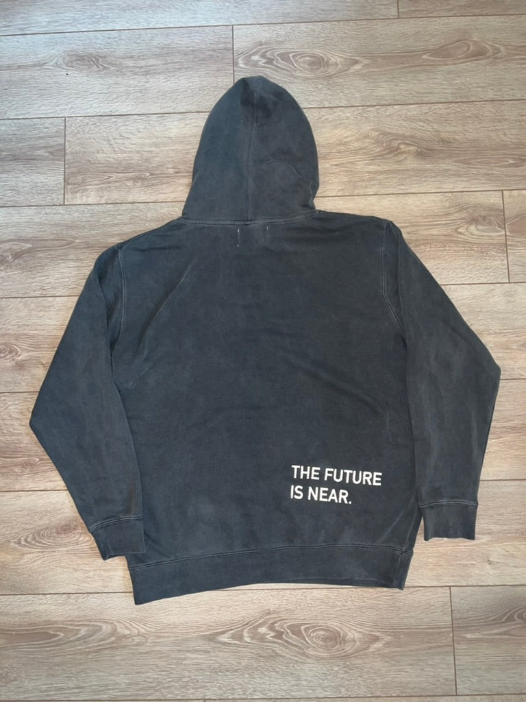 Each hoodie features an embroidered SoleSavy logo on the right chest, 3M black ink "The Future is Near" detailing on the back, and a custom SoleSavy tag label.
