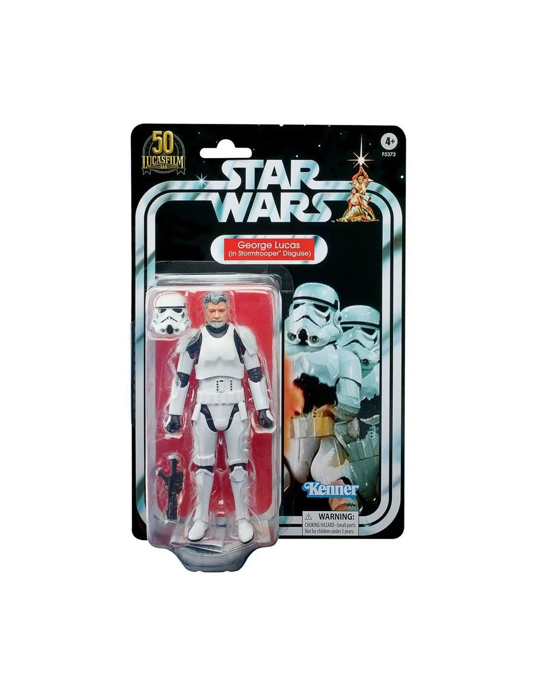 The creator of Star Wars! Fans and collectors can bring this premium George Lucas (In Stormtrooper Disguise) action figure home to display on their shelves as part of their Star Wars collection. The Star Wars The Black Series George Lucas (In Stormtrooper Disguise) 6-Inch Action Figure makes use of the updated 2020 The Black Series Imperial Stormtrooper body and puts George Lucas under the helmet! Plastic action figure has removable helmet and blaster pistol. Comes packaged on a retro-style cardback, similar to the 40th Anniversary Collection figures and some of the 50th Anniversary of Lucasfilm exclusive releases.
