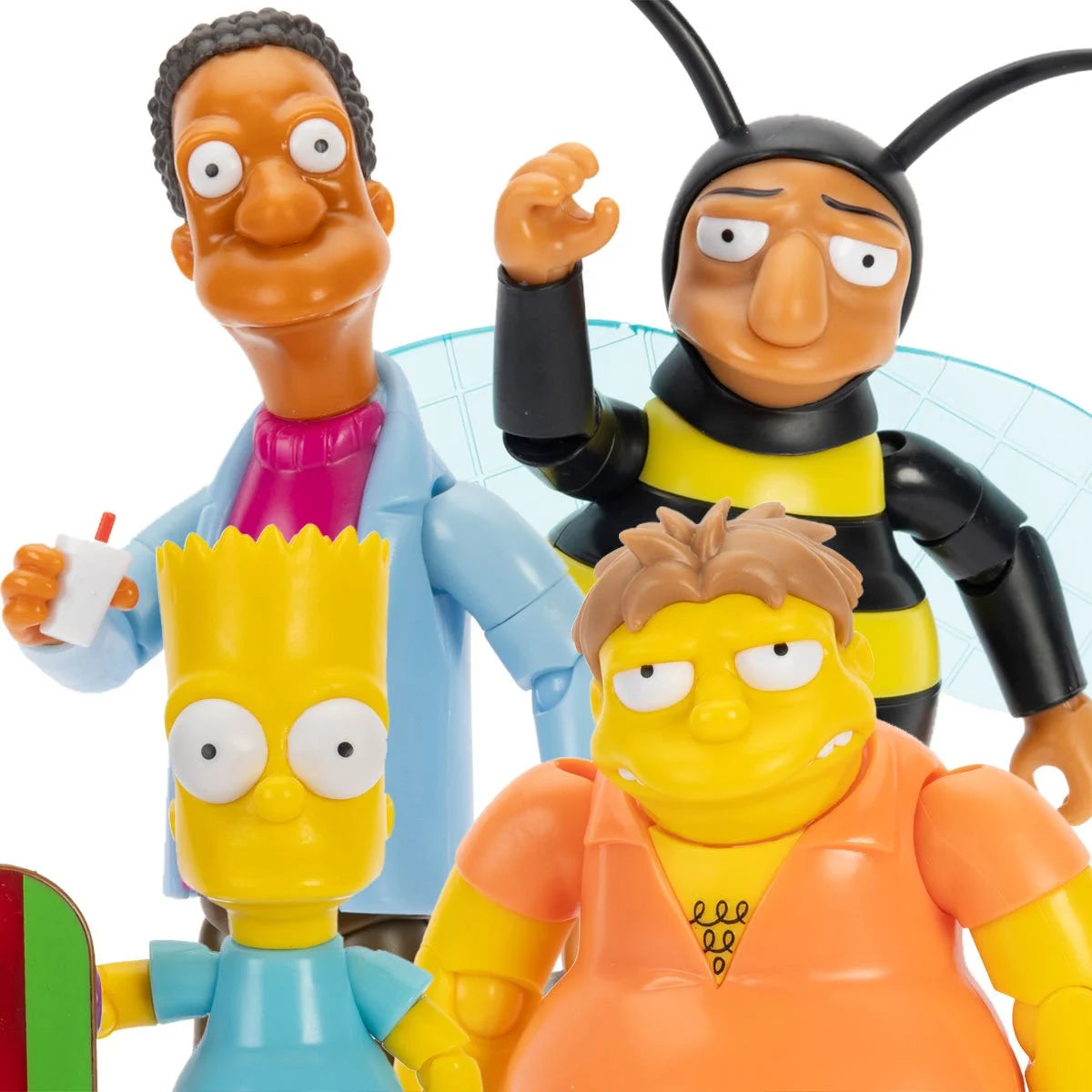 Inspired by the iconic animated series, The Simpsons, comes these 5-Inch action figures by Jakks Pacific. Wave 4 includes Blue Shirt Bart, Barney, Bumblebee Man, and Carl Carlson. Each figure features a highly detailed design, capturing their animated look and feel Immerse yourself in Springfield with these 5-Inch scale action figures that feature over 14 points of articulation for easy pose and play. Perfect for fans and collectors, these figures have remarkable detail and fun, engaging features. Perfect for any Simpsons fan or collector. Every 5-Inch action figure is compatible with all diorama playsets (sold separately).