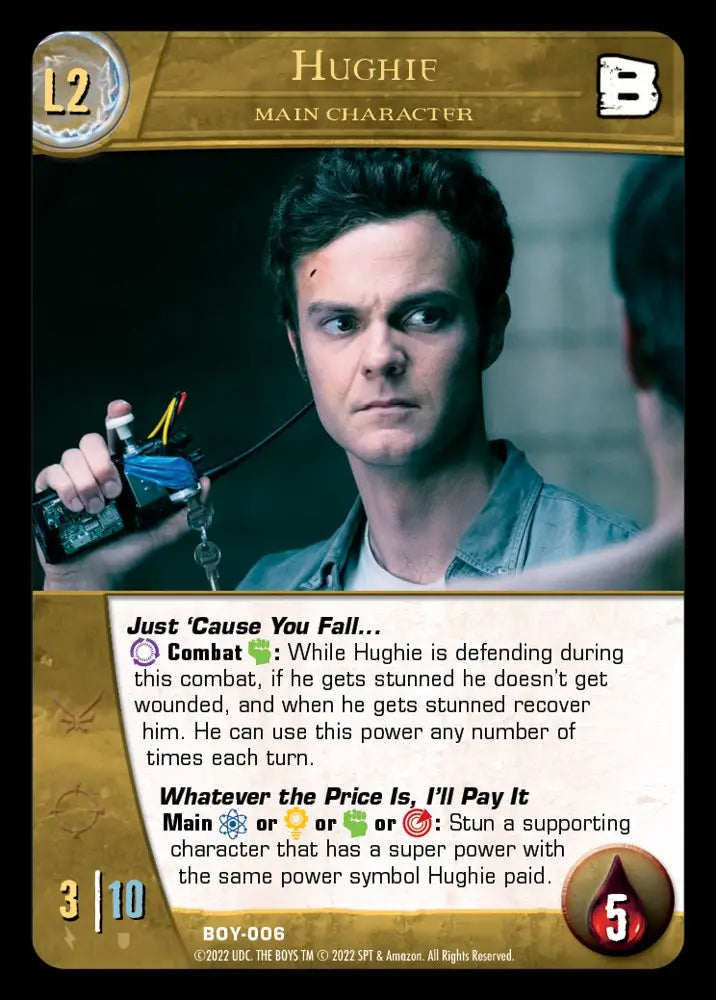 This latest addition to Vs. System® 2PCG® adds 200 new cards of the fan-favorite hit series; The Boys! Expand your collection with the powers of the mightiest heroes from The Seven and the abilities of the cunning vigilantes from The Boys. Build up you deck with iconic characters like Homelander, Queen Mauve, Butcher, Hughie and more!