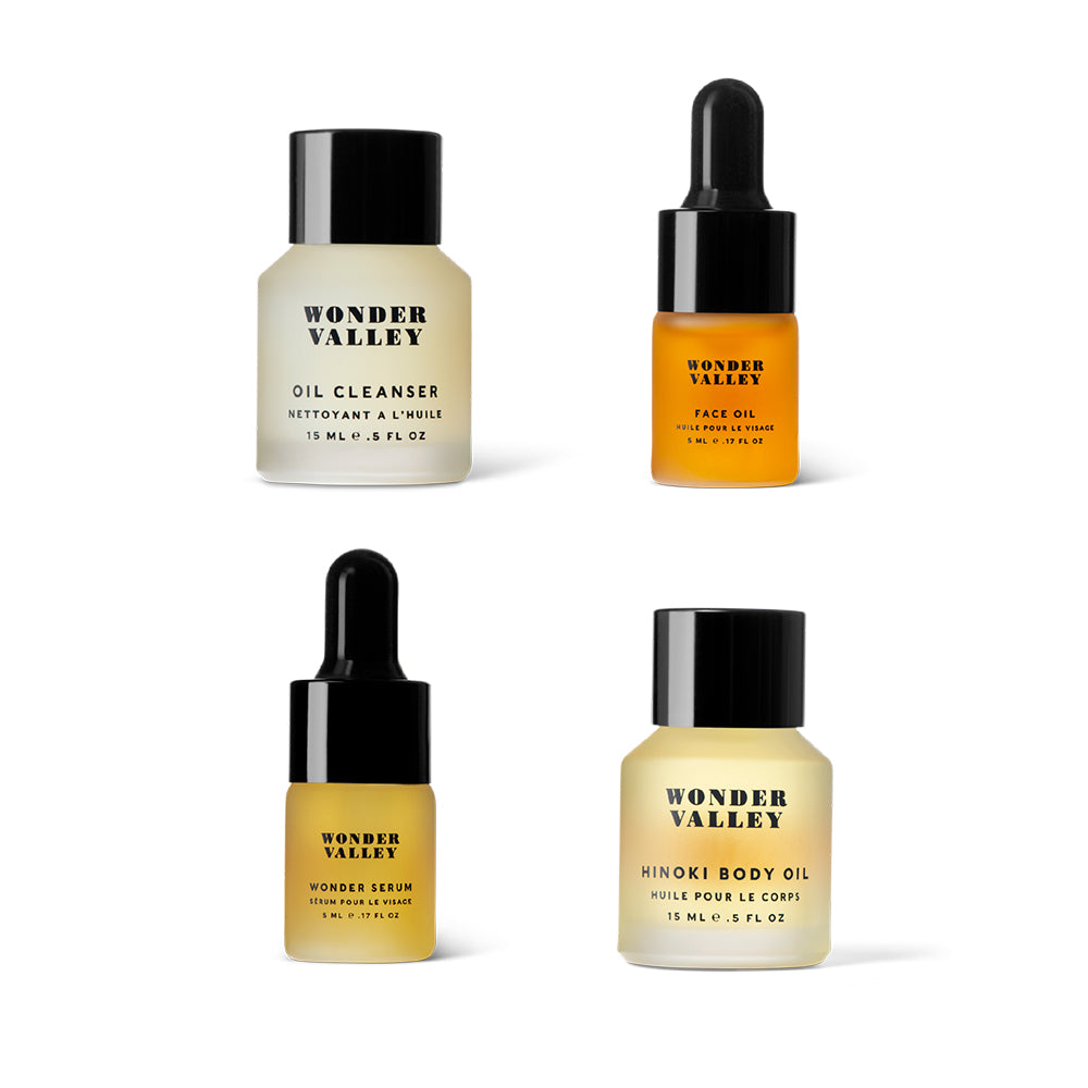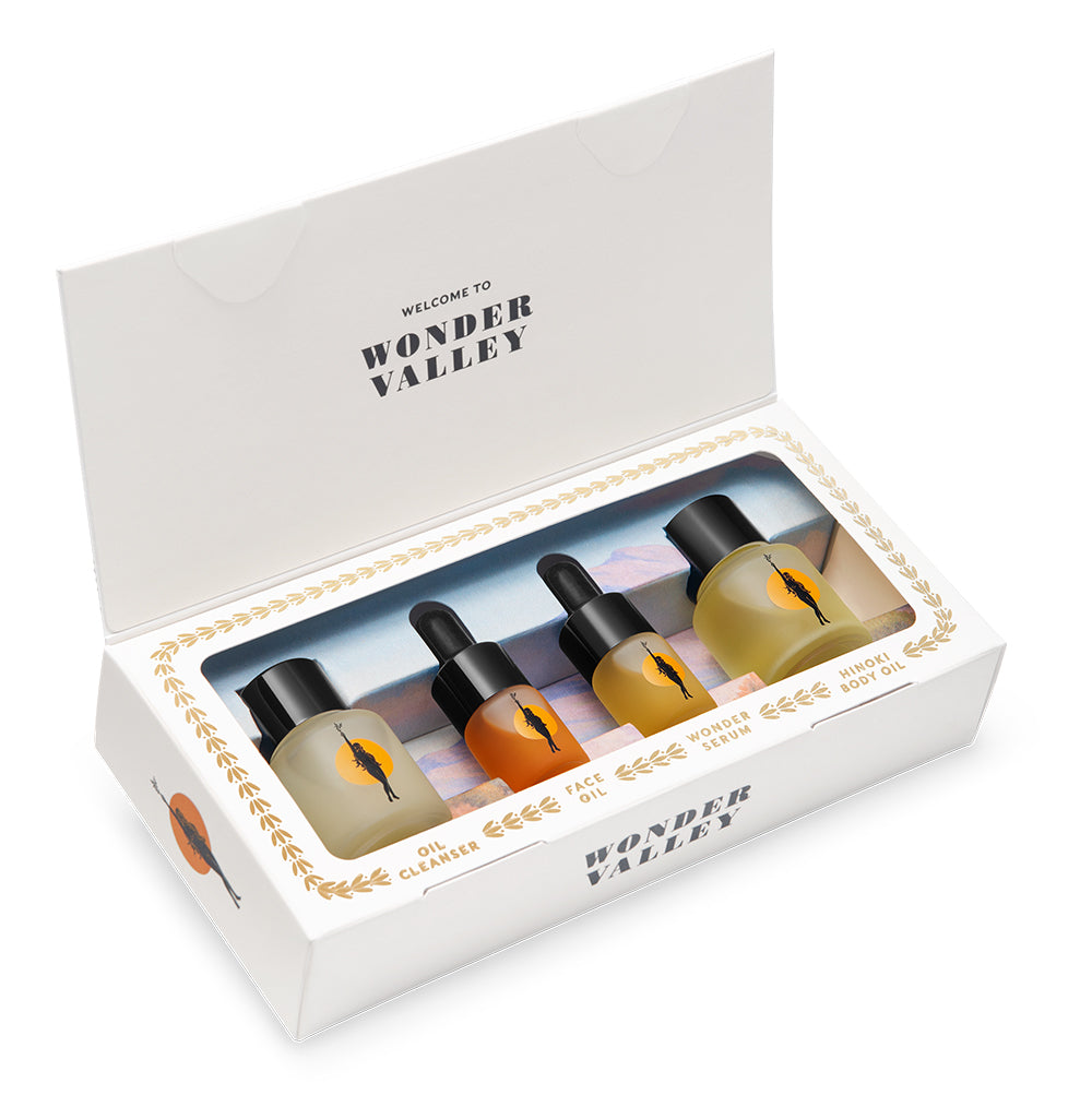 The Little Wonders set is the perfect introduction to our bestselling skincare essentials. This four-piece microbiome-friendly set provides a complete regimen for daily skincare. Bring your favorites on the road with this TSA-approved travel size. Each product is in a glass bottle nestled in a gold-foiled sturdy paper box with a desert landscape.